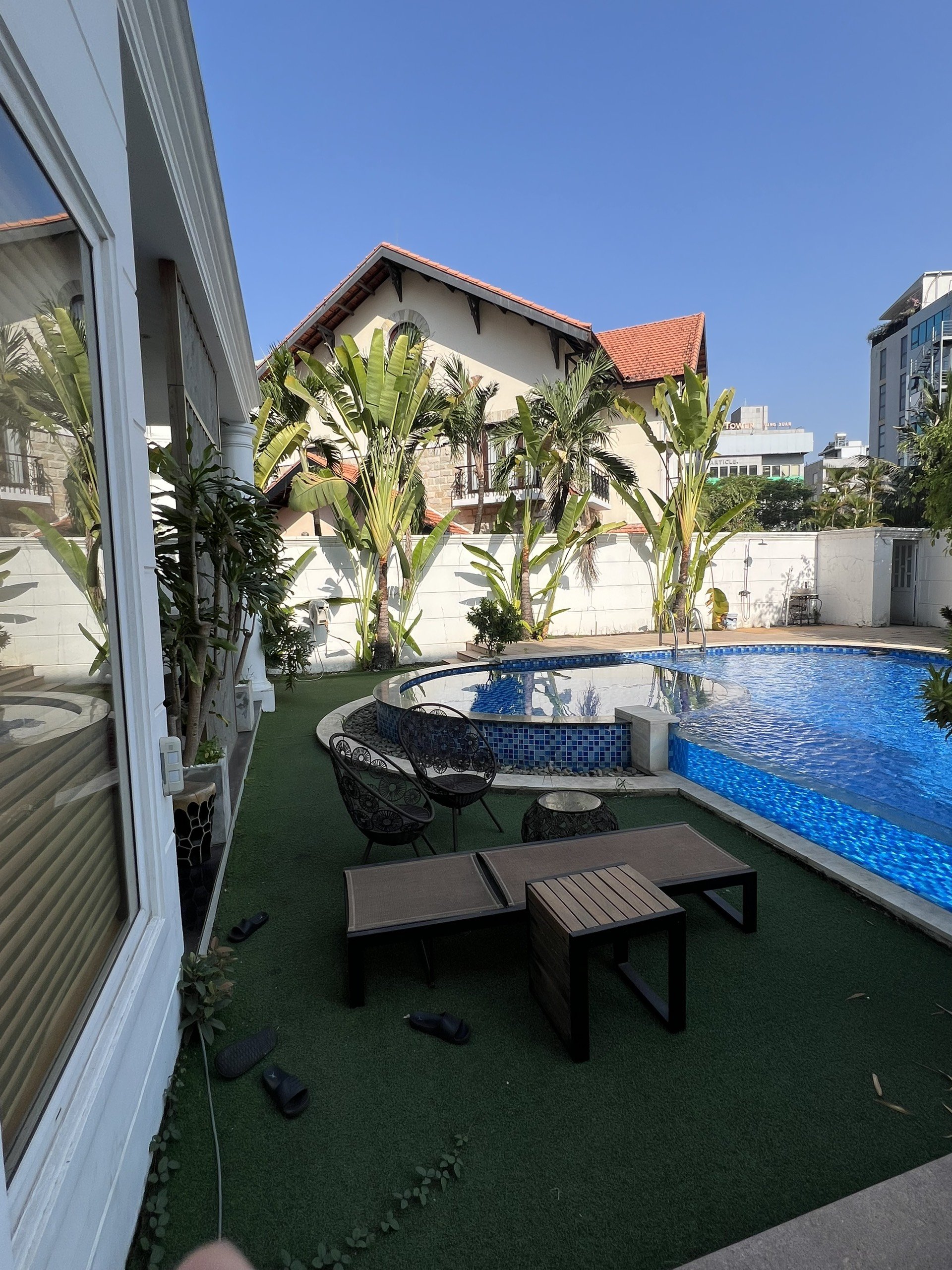 - Kết Cấu: Hầm Trệt 2 Lầu Áp mái + Sân vườn – Hồ bơi – 6 PN