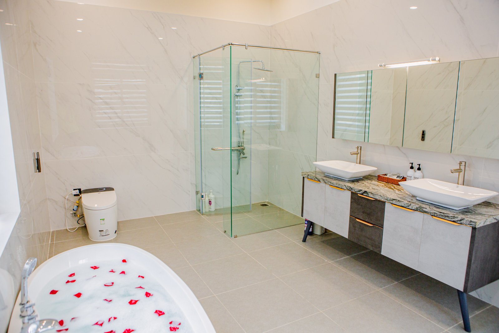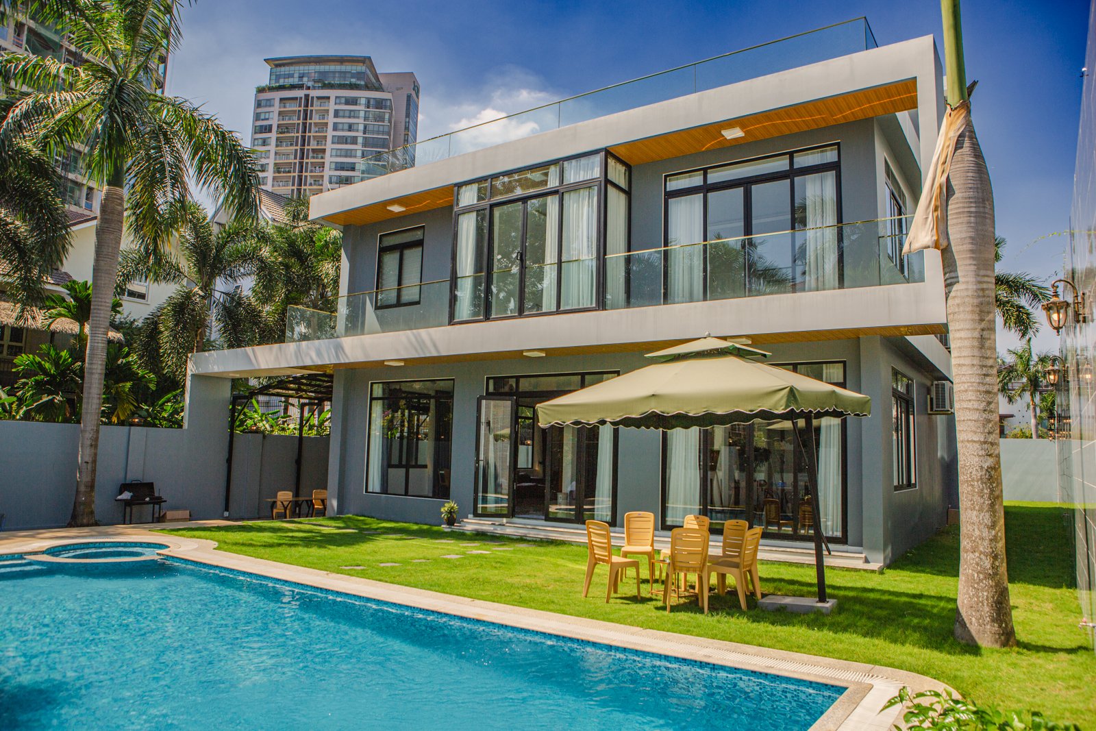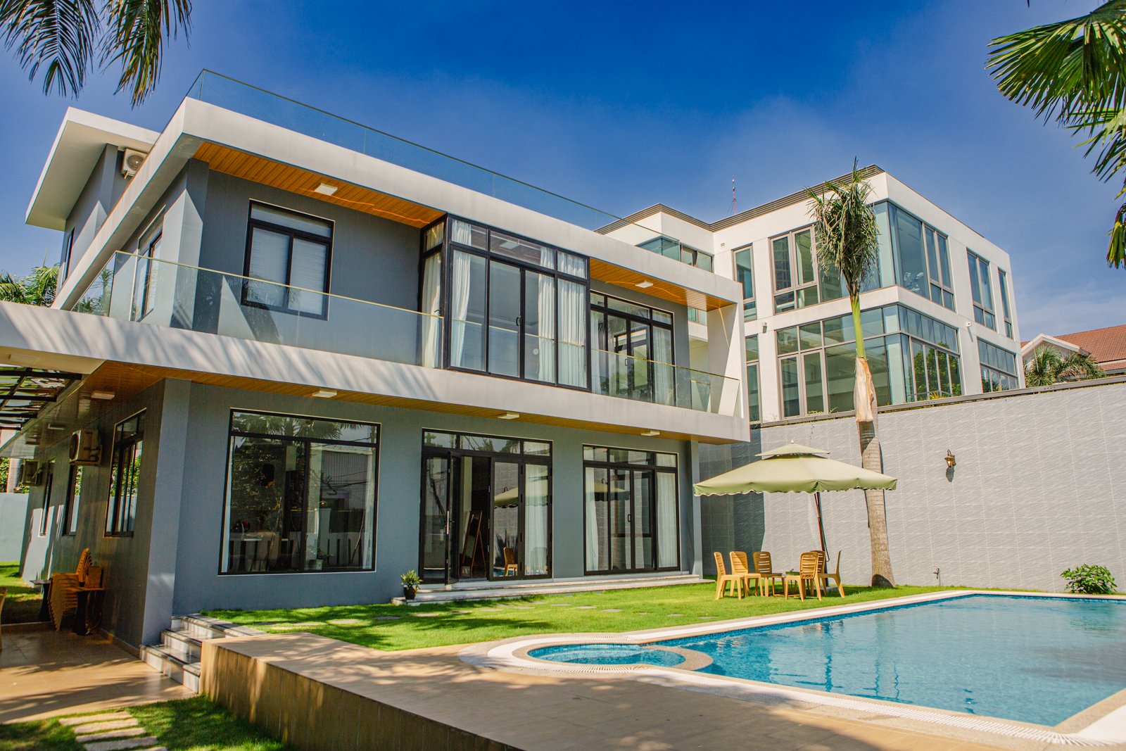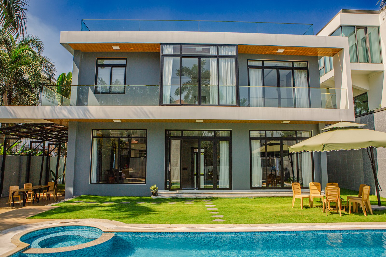 - Kết cấu: 1 trệt 2 lầu, sân vườn, hồ bơi